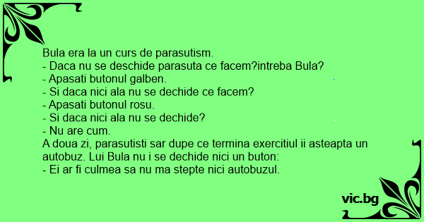 - Daca nu se deschide parasuta ce facem?intreba Bula?