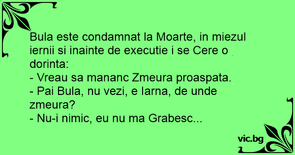 Bula este condamnat la Moarte, in miezul iernii si inainte de executie i se Cere o dorinta: