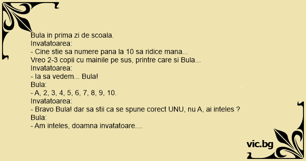 - Bravo Bula! dar sa stii ca se spune corect UNU, nu A, ai inteles ?