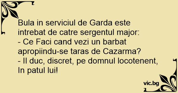 Bula in serviciul de Garda este intrebat de catre sergentul major:
