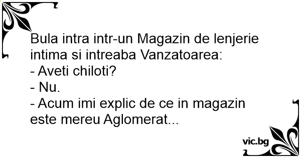 Bula intra intr-un Magazin de lenjerie intima si intreaba Vanzatoarea: