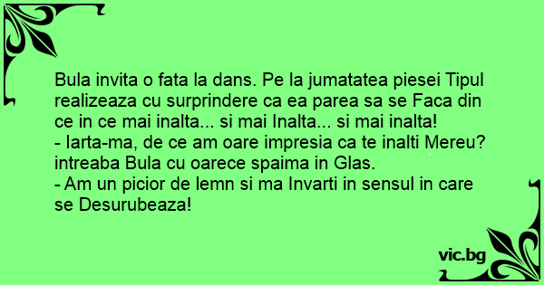 Bula invita o fata la dans. Pe la jumatatea piesei Tipul realizeaza cu surprindere ca ea parea sa se Faca din ce in ce mai inalta... si mai Inalta... si mai inalta!