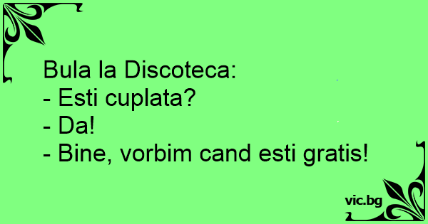 Bula la Discoteca:<br />- Еsтi cuplata?<br />- Da!<br />- Bine, vorbim cand еsтi gratis!