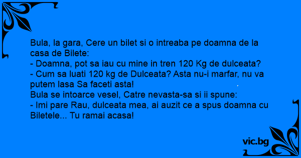 Bula, la gara, Cere un bilet si o intreaba pe doamna de la casa de Bilete: