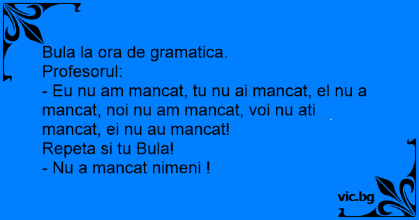 - Eu nu am mancat, tu nu ai mancat, el nu a mancat, noi nu am mancat, voi nu ati mancat, ei nu au mancat!