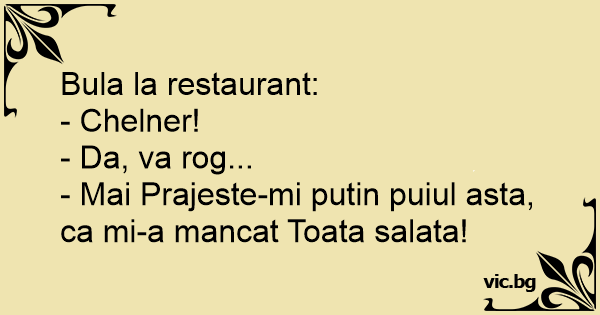 - Mai Prajeste-mi putin puiul asta, ca mi-a mancat Toata salata!