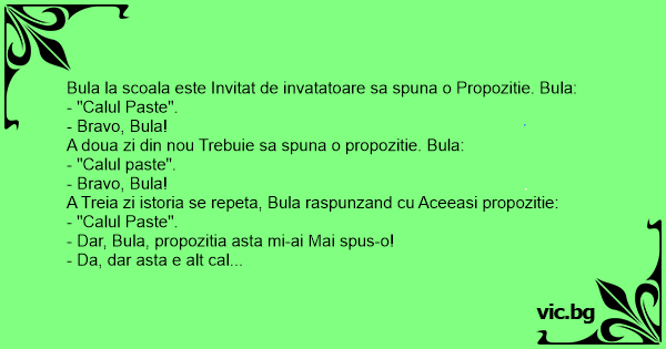 A doua zi din nou Trebuie sa spuna o propozitie. Bula: