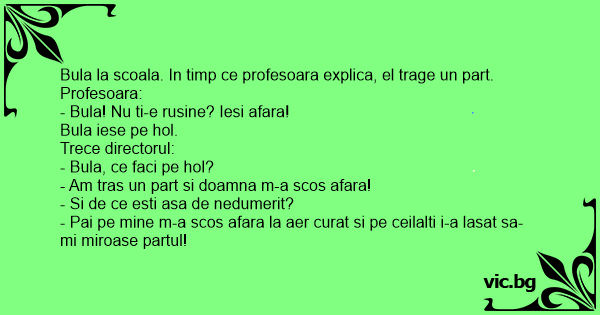 Bula la scoala. In timp ce profesoara explica, el trage un part.
