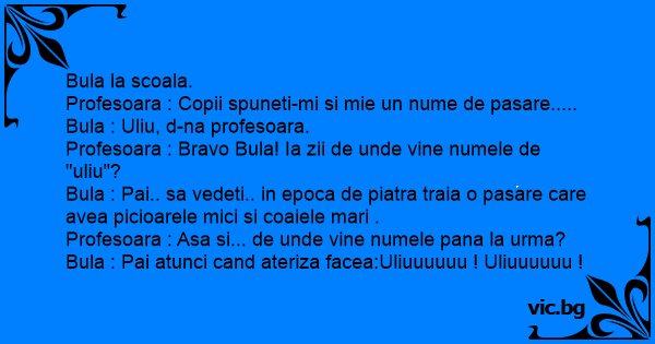 Profesoara : Bravo Bula! Ia zii de unde vine numele de "uliu"?