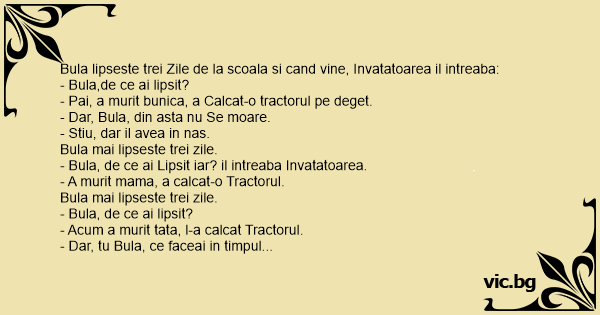 - Bula, de ce ai Lipsit iar? il intreaba Invatatoarea.