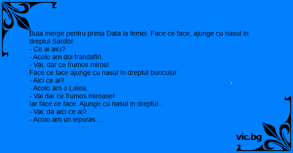 Bula merge pentru prima Data la femei. Face ce face, ajunge cu nasul in dreptul Sanilor: