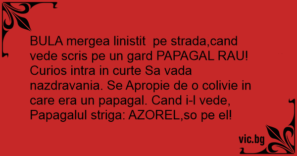 BULA mergea linistit pe strada,cand vede scris pe un gard PAPAGAL RAU!