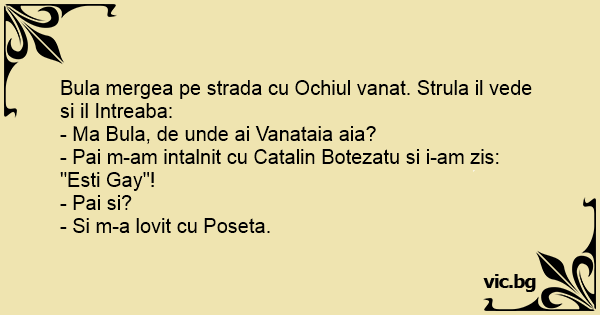 Bula mergea pe strada cu Ochiul vanat. Strula il vede si il Intreaba: