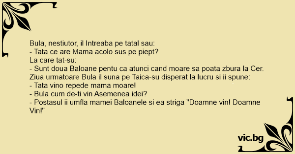 - Postasul ii umfla mamei Baloanele si ea striga "Doamne vin! Doamne Vin!"