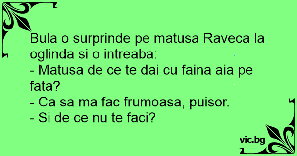 Bula o surprinde pe matusa Raveca la oglinda si o intreaba: