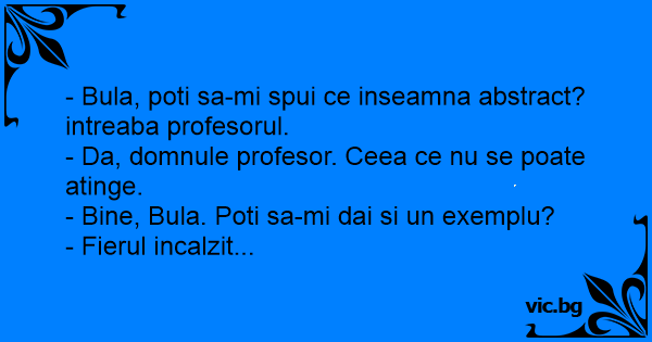 - Bula, poti sa-mi spui ce inseamna abstract? intreaba profesorul.