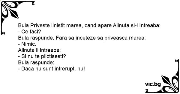 Bula Priveste linistit marea, cand apare Alinuta si-l Intreaba: