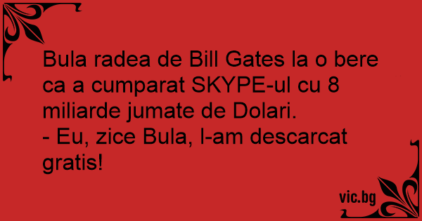 Bula radea de Bill Gates la o bere ca a cumparat SKYPE-ul cu 8 miliarde jumate de Dolari.