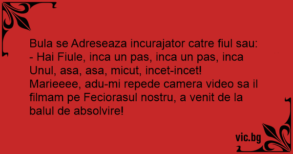 Marieeee, adu-mi repede camera video sa il filmam pe Feciorasul nostru, a venit de la balul de absolvire!