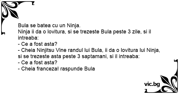 Ninja ii da o lovitura, si se trezeste Bula peste 3 zile, si il intreaba: