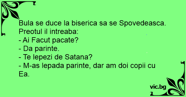 Bula se duce la biserica sa se Spovedeasca. Preotul il intreaba: