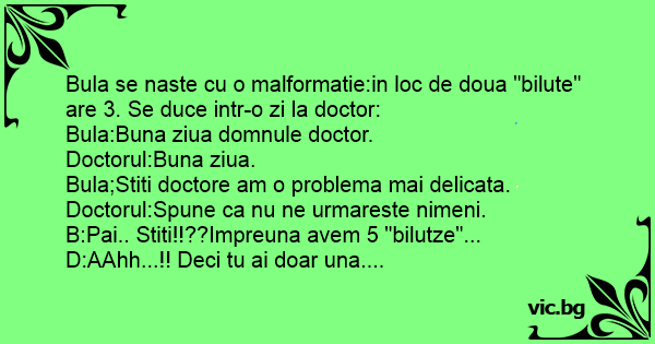 Bula se naste cu o malformatie:in loc de doua "bilute" are 3. Se duce intr-o zi la doctor: