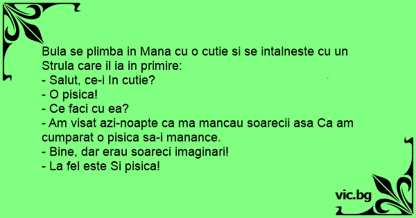 - Am visat azi-noapte ca ma mancau soarecii asa Ca am cumparat o pisica sa-i manance.