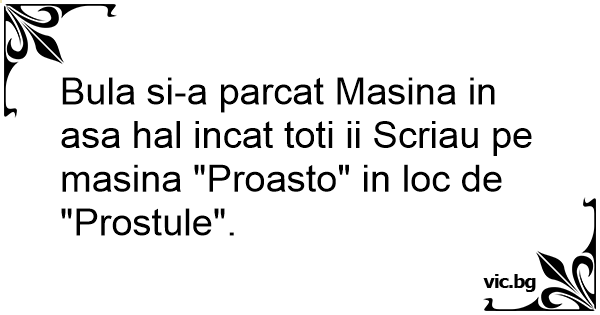 Bula si-a parcat Masina in asa hal incat toti ii Scriau pe masina "Proasto" in loc de "Prostule".
