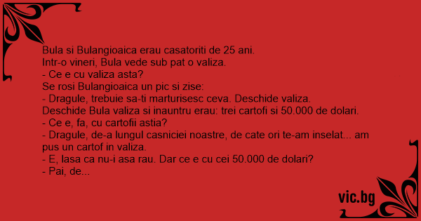 - Dragule, de-a lungul casniciei noastre, de cate ori te-am inselat... am pus un cartof in valiza.