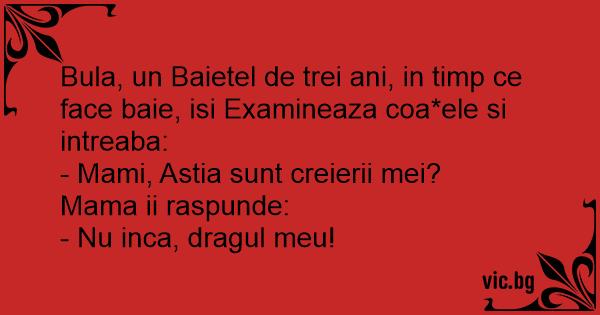 Bula, un Baietel de trei ani, in timp ce face baie, isi Examineaza coa*ele si intreaba: