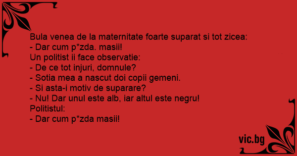 Bula venea de la maternitate foarte suparat si tot zicea: