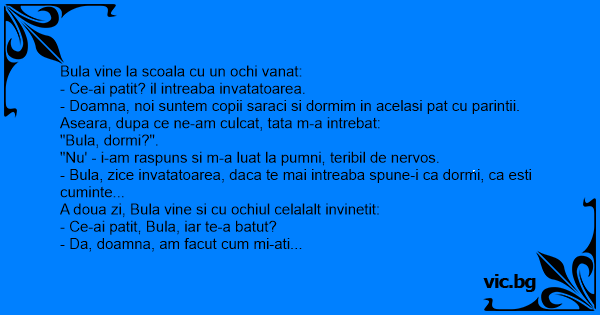 - Bula, zice invatatoarea, daca te mai intreaba spune-i ca dormi, ca еsтi cuminte...
