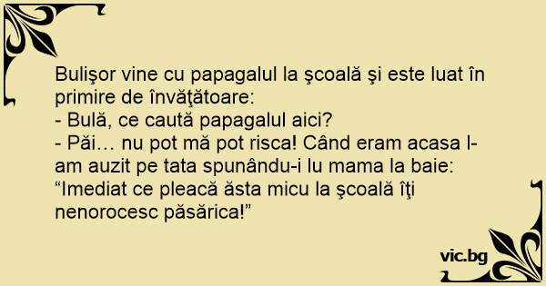 Bulişor vine cu papagalul la şcoală şi este luat în primire de învăţătoare:
