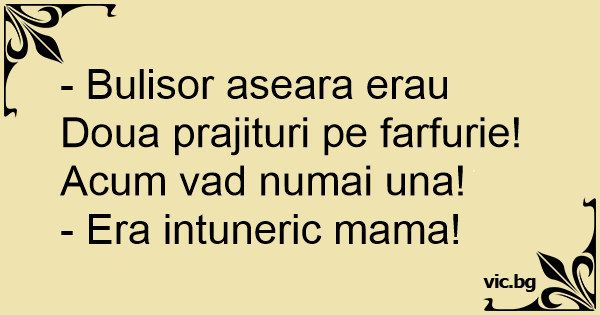 - Bulisor aseara erau Doua prajituri pe farfurie! Acum vad numai una!