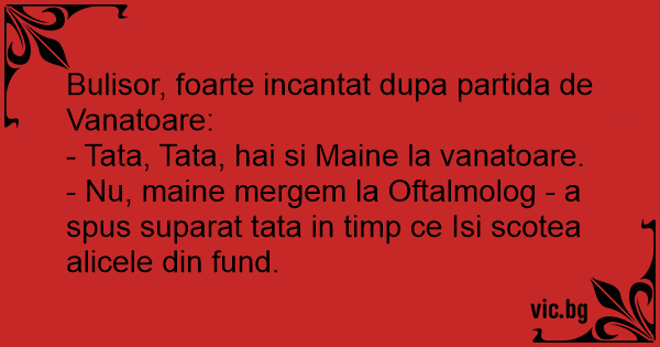 - Nu, maine mergem la Oftalmolog - a spus suparat tata in timp ce Isi scotea alicele din fund.