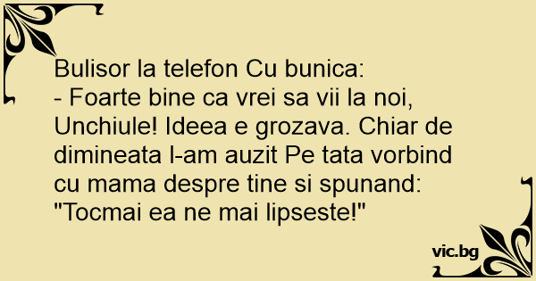 - Foarte bine ca vrei sa vii la noi, Unchiule! Ideea e grozava. Chiar de dimineata l-am auzit Pe tata vorbind cu mama despre tine si spunand: