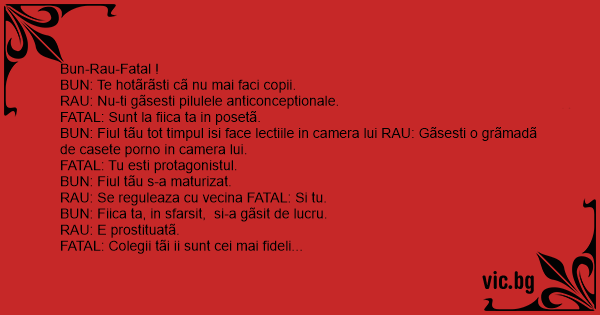 RAU: Se reguleaza cu vecina FATAL: Si tu.