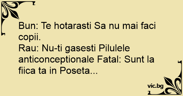 Rau: Nu-ti gasesti Pilulele anticonceptionale Fatal: Sunt la fiica ta in Poseta...