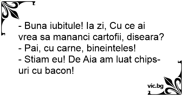 - Buna iubitule! Ia zi, Cu ce ai vrea sa mananci cartofii, diseara?