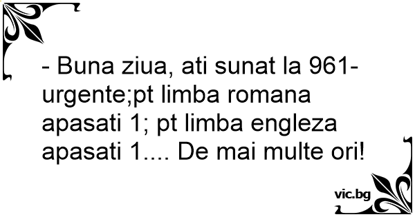 - Buna ziua, ati sunat la 961-urgente;pt limba romana apasati 1; pt limba engleza apasati 1.... De mai multe ori!