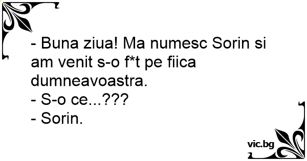 - Buna ziua! Ma numesc Sorin si am venit s-o f*t pe fiica dumneavoastra.