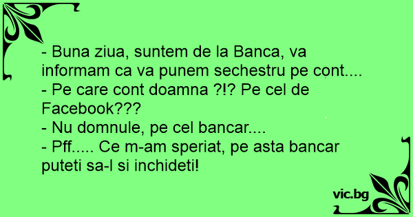 - Pff..... Ce m-am speriat, pe asta bancar puteti sa-l si inchideti!