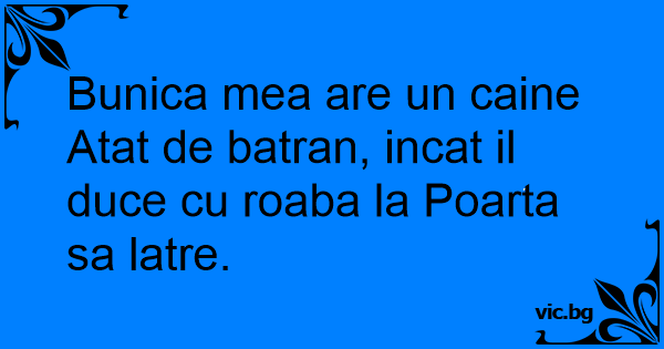 Bunica mea are un caine Atat de batran, incat il duce cu roaba la Poarta sa latre.