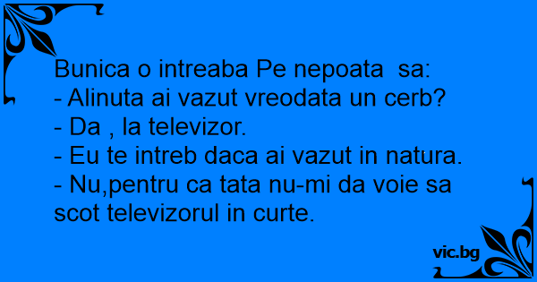 - Nu,pentru ca tata nu-mi da voie sa scot televizorul in curte.