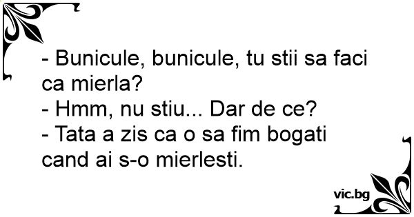 - Bunicule, bunicule, tu stii sa faci ca mierla?