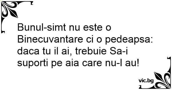 Bunul-simt nu este o Binecuvantare ci o pedeapsa: daca tu il ai, trebuie Sa-i suporti pe aia care nu-l au!