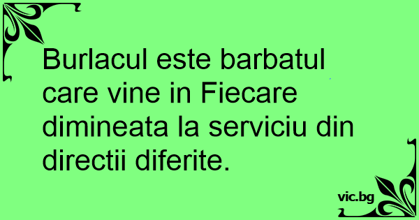 Burlacul este barbatul care vine in Fiecare dimineata la serviciu din directii diferite.