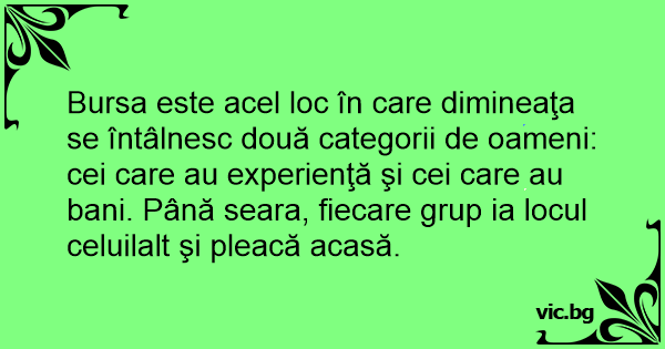 Bursa este acel loc în care dimineaţa se întâlnesc două categorii de oameni: cei care au experienţă şi cei care au bani. Până seara, fiecare grup ia locul celuilalt şi pleacă acasă.