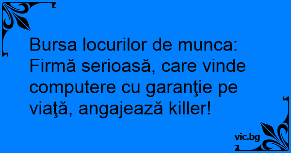 Bursa locurilor de munca: Firmă serioasă, care vinde computere cu garanţie pe viaţă, angajează killer!