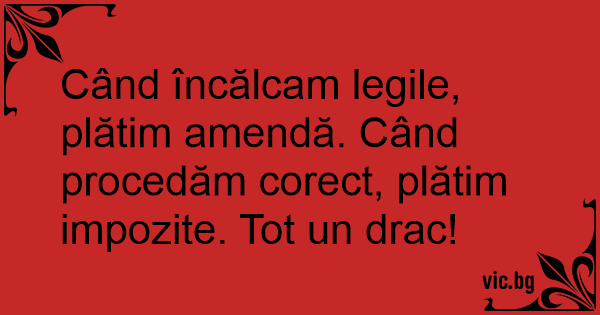 Când încălcam legile, plătim amendă. Când procedăm corect, plătim impozite. Tot un drac!